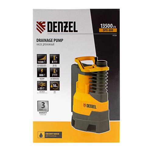 Дренажный насос DENZEL X-PRO DPХ800, 800 Вт, высота подъема 8 м, 13500 л/ч