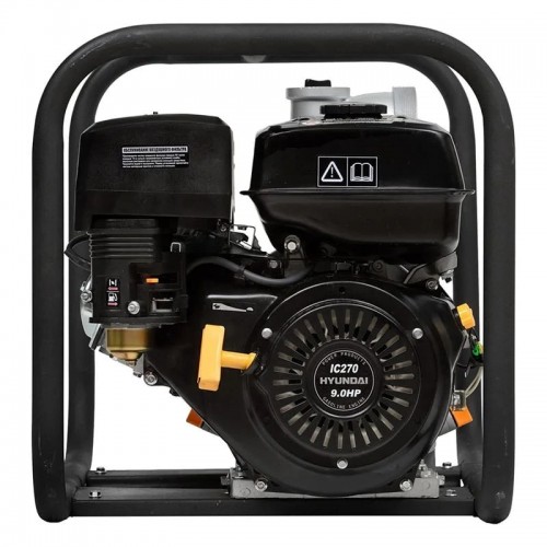 Мотопомпа Hyundai HY 100 оснащена четырехтактным бензиновым двигателем мощностью 9 л.с. С ее помощью вы сможете перекачивать большие объемы жидкости даже на значительное расстояние от источника. Для запуска мотора используется ручной стартер. Долгое время работы обеспечивает вместительный топливный бак объемом 6 л.