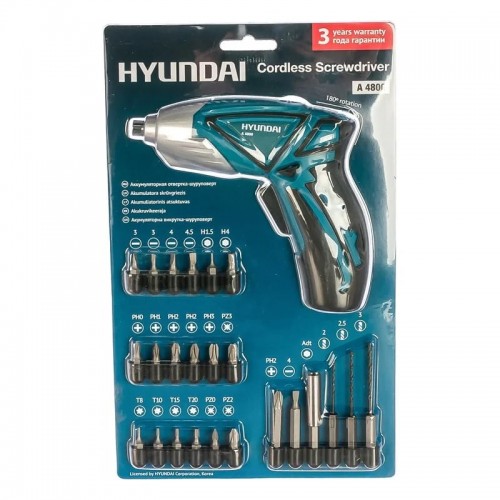 Модель Hyundai A 4800 отличается малым весом и компактными размерами. Инструмент всегда найдет применение в хозяйстве во время мелкого ремонта по дому. В комплект поставки входит набор рабочих насадок из 24 предметов, которые подойдут под крепеж разного типа.