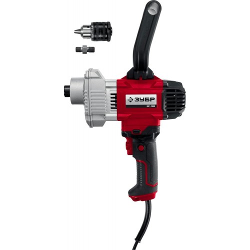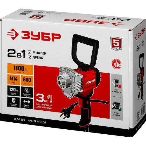 Миксер строительный ЗУБР МР-1100, предназначен для эффективного перемешивания любых растворов, вплоть до тяжелых с включением крупных фракций. Двухступенчатый редуктор обеспечивает большой крутящий момент. Электронная регулировка оборотов и широкий выбор сменных насадок помогает одинаково хорошо работать с различными материалами. Высокий крутящий момент благодаря двухступенчатому передаточному механизму. Металлический корпус редуктора для надежности при больших нагрузках. Электронная регулировка числа оборотов колесиком и степенью нажатия на выключатель позволяет начать перемешивание на минимальных оборотах и регулировать ее в процессе работы. Кнопка фиксации выключателя в нажатом положении помогает при длительных работах. Дополнительная рукоятка для надежного удержания изделия при перемешивании. Облегченный доступ к щеткам для удобства замены.