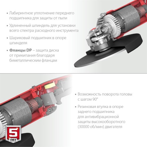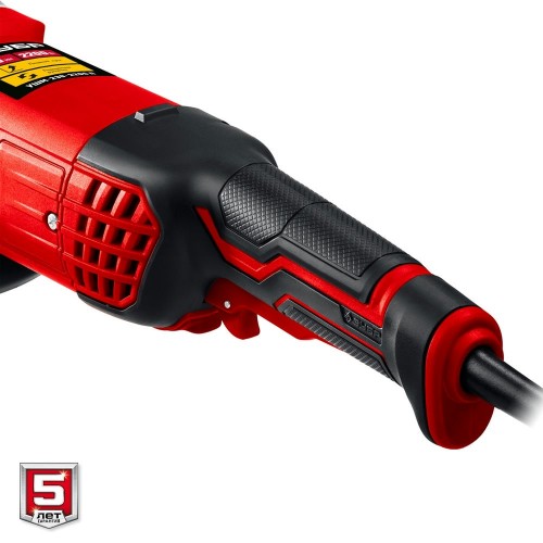- Широкий эргономичный выключатель с пылезащитой, блокировкой непреднамеренного включения, а также фиксацией во включенном положении