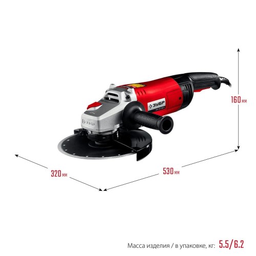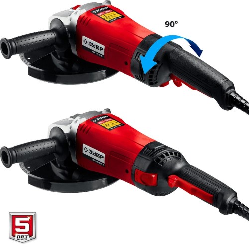 Угловая шлифмашина ЗУБР УШМ-230-2405 П, предназначена для зачистки, шлифовки и резки металлов, обработки бетона и камня при установке соответствующих шлифовальных, отрезных, алмазных кругов. Специально разработанный корпус редуктора для улучшения теплоотвода и улучшения прочности самого нагруженного узла. Система плавного пуска позволяет включать мощный двигатель без рывка и пусковой перегрузки. Пылезащищенный выключатель (степень защиты IP5X) - надежная защита основного узла. Поворотные голова и основная рукоятка для более комфортной работы даже в сложных условиях. Удобная блокировка шпинделя для простой смены диска. Фирменная дополнительная рукоятка, устанавливаемая в 2 положениях. Широкий эргономичный выключатель с пылезащитой, блокировкой непреднамеренного включения, а также фиксацией во включенном положении.