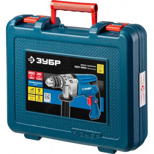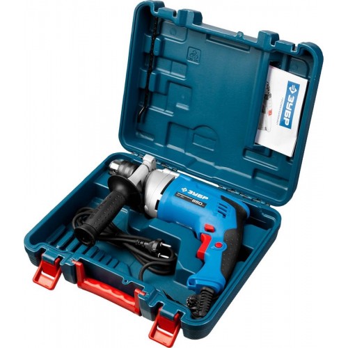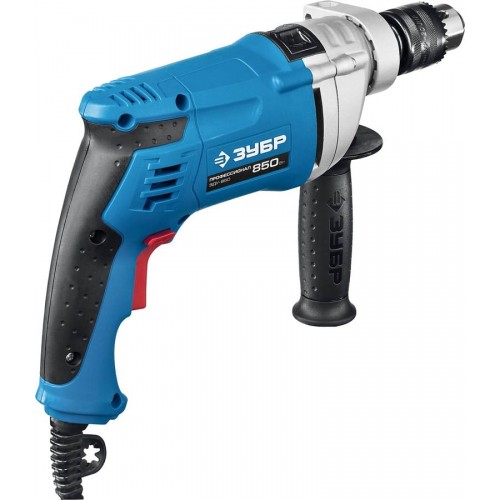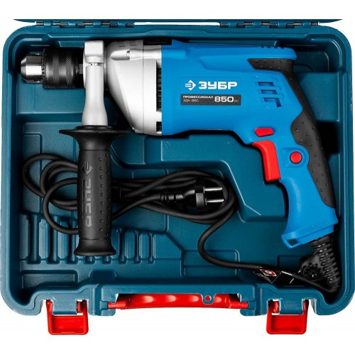 Дрель ударная электрическая ЗУБР ЗДУ-850 ЭРМКМ2, предназначена для сверления отверстий в различных материалах (дерево, сталь и т. д.). Мощная дрель с металлическим корпусом редуктора, качественным кулачковым патроном, плавной регулировкой оборотов и надежной конструкцией на подшипниках - лучший подарок мастеру. Функция сверления с ударом, широкий диапазон регулировки частоты вращения, удобная дополнительная рукоятка - все, что нужно для качественной работы. Надежный инструмент для эффективной, качественной работы. Мощная дрель для сложных работ. Корпус редуктора из литого под давлением алюминия обладает повышенной прочностью, обеспечивает лучший теплоотвод и увеличивает надежность вследствие стабильности геометрических размеров. Функция сверления с ударом позволяет выполнять отверстия в кирпиче и легком бетоне. Электронная регулировка оборотов в широком диапазоне расширяет возможности использования изделия.