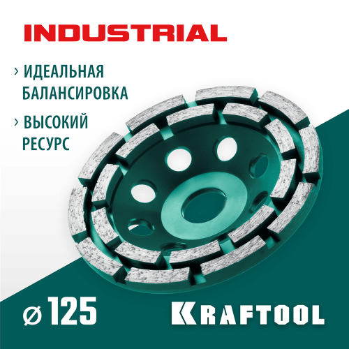 KRAFTOOL 125 мм, алмазная, двухрядная, шлифовальная чашка INDUSTRIAL 33369-125