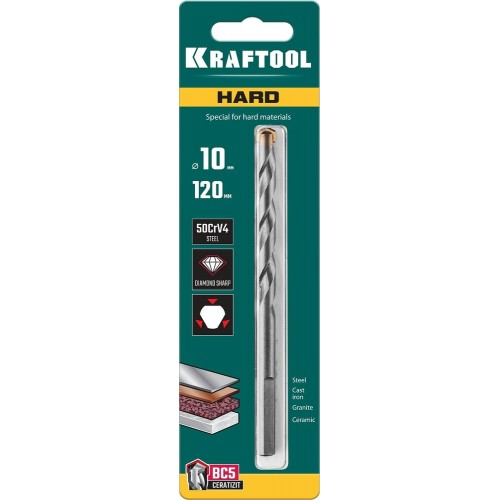 KRAFTOOL 10 х 120 мм, специальное cверло по твёрдым материалам HARD 29177-120-10