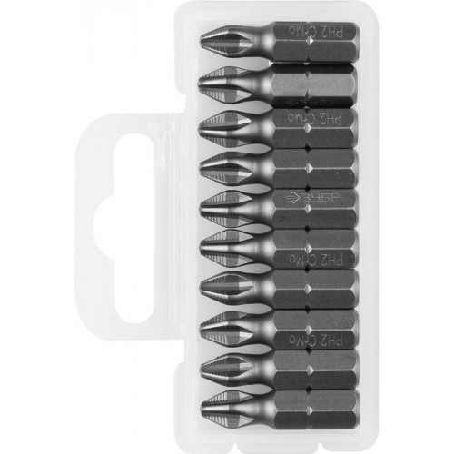 • ЗУБР PH2, 25 мм, 10 шт., биты кованые МАСТЕР 26001-2-25-10