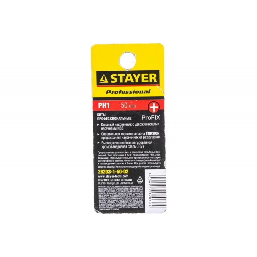 Профессиональные биты STAYER 26203-1-50-02 изготовлены из высококачественной легированной стали и имеют точную геометрию шлицов, что обеспечивает длительный срок службы. Предназначены для монтажа и демонтажа резьбовых соединений. Кованый наконечник с удерживающими насечками NSS.