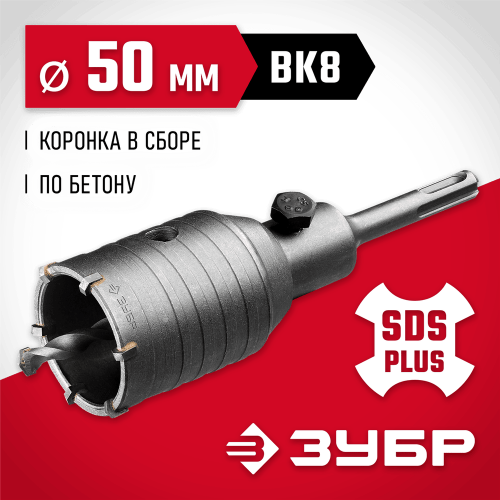 ЗУБР Ø 50 мм, 6 зубьев, коронка по бетону с державкой 29211-50