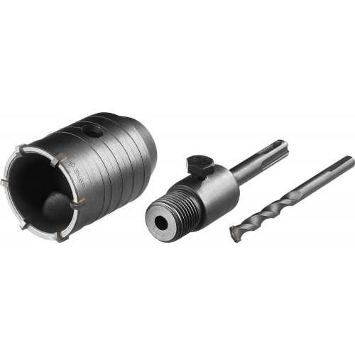 Буровая коронка ЗУБР 29211-50, предназначена для сверления отверстий в бетоне, кирпиче, природном и искусственном камне, а также плотных известняках. Используется с дрелями и перфораторами мощностью не менее 850 Вт в режиме ударного сверления. При прокладке коммуникаций в строящемся здании не обойтись без коронок по бетону. Они позволяют без труда получать отверстия среднего или большого диаметра в самых прочных материалах. Твердосплавные зубья из сплава ВК8 позволяют эффективно дробить обрабатываемый материал. Специальная спиралевидная форма корпуса коронки из высокопрочной стали уменьшает трение о стенки отверстия, ускоряет отвод шлама и повышает срок службы инструмента. Коронка по бетону с полной оснасткой. Державка SDS-plus из легированной стали. Резьбовая посадка М22 обеспечивает надежное крепление коронки с державкой. Фиксация центрирующего сверла винтом Износостойкое покрытие защищает от коррозии.