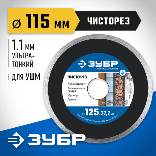 ЗУБР ЧИСТОРЕЗ 115 мм (22.2 мм, 5х1.1 мм), алмазный диск, Профессионал (36663-115)