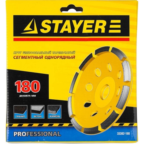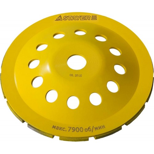Неоспоримым преимуществом шлифовальных алмазных чашек STAYER серии PROFESSIONAL является их высокая производительность, увеличенный рабочий ресурс и универсальность применения при обработке различных строительных материалов. Применяются для шлифования поверхностей изделий из бетонных материалов, гранита, природного и искусственного камня.