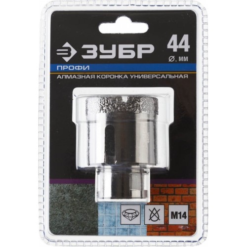 ЗУБР АВК d 44 мм (М14, 15 мм кромка), Вакуумная алмазная коронка, Профессионал (29865-44)