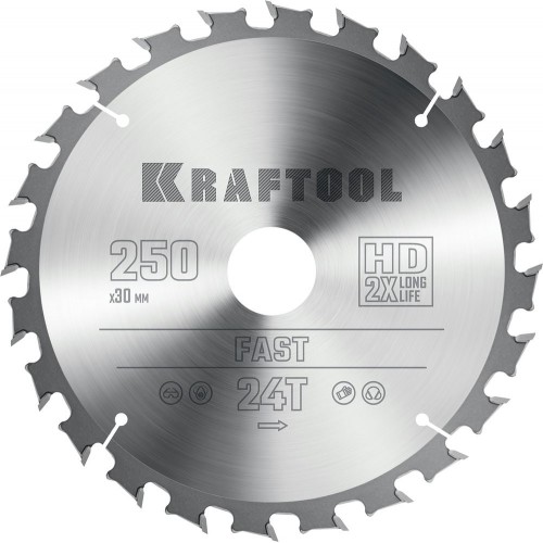 KRAFTOOL Fast 250 х 30 мм 24Т, диск пильный по дереву (36950-250-30)