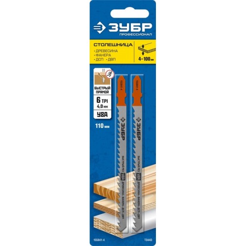 ЗУБР по дереву, фанере, ДСП, ДВП, EU-хвостовик, шаг 4 мм, 110 мм, 2 шт., полотна для эл/лобзика 155841-4_z02 Профессионал