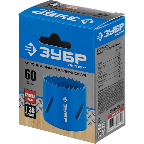 ЗУБР d 60 мм, глубина сверления до 38 мм, коронка биметаллическая 29531-060_z01