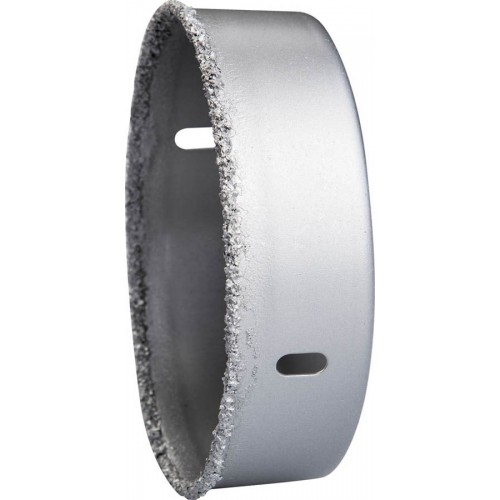 Применяется для получения ровных отверстий в облицовочных материалах, а также в ячеистом бетоне, кирпиче и гипсокартоне. Используется в сборе с державкой и центрирующим сверлом на дрелях и легких перфораторах в режимме безударного сверления.