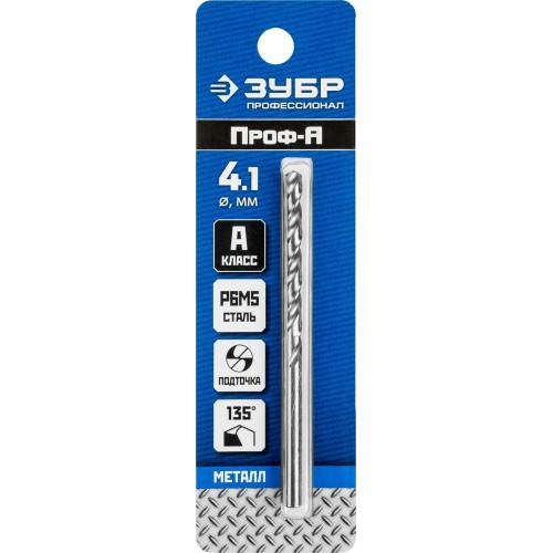 Сверло ЗУБР 29625-4.1, предназначено для обработки легированных и углеродистых сталей с пределом прочности до 900 Н/мм², цветных металлов, серого чугуна и пластмассы. Качественное и точное сверло с большим ресурсом. Сверло изготовлено методом шлифования профиля по ГОСТ 10902-77 и соответствует классу точности сверления "А1". Крестообразная подточка позволяет начать сверлить без предварительного кернения. Угол заточки при вершине равный 135° повышает производительность работ.
