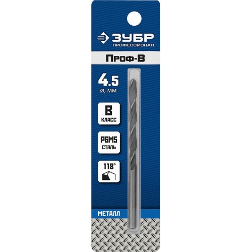 ЗУБР Ø 4.5 x 80 мм, сталь Р6М5, класс В, сверло по металлу 29621-4.5 Профессионал