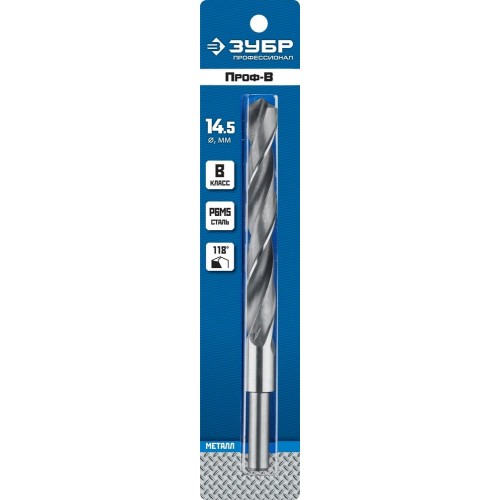 ЗУБР Ø 14.5 x 169 мм, сталь Р6М5, класс В, сверло по металлу 29621-14.5 Профессионал
