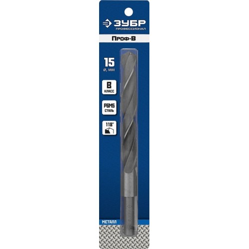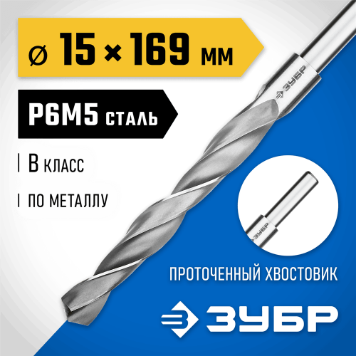 ЗУБР Ø 15 x 114 мм, сталь Р6М5, класс В, сверло по металлу 29621-15 Профессионал