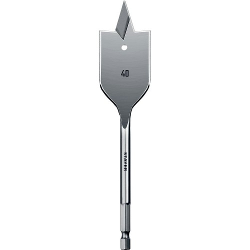 Сверло по дереву перовое STAYER 2950-40_z01, предназначено для работы с древесиной, а также легкими строительными материалами, такими как гипсокартон. Шестигранный хвостовик с проточкой, диаметр сверла - 40 мм.