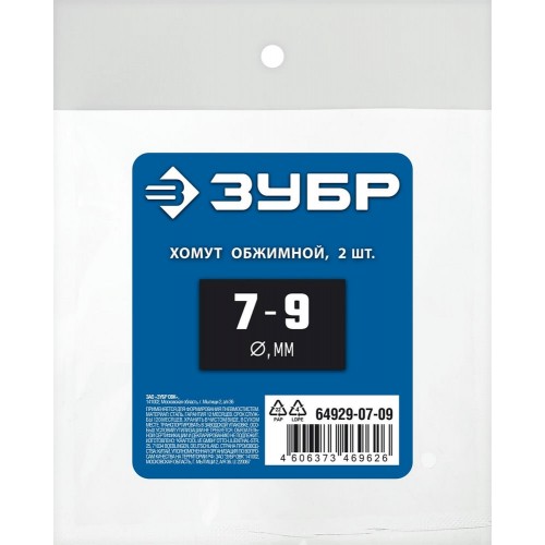 ЗУБР 2 шт., Ø 7-9 мм, обжимной хомут для пневмоинструмента 64929-07-09 Профессионал