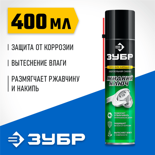 ЗУБР Жидкий ключ 400 мл, проникающая аэрозольная смазка, Профессионал (41446)