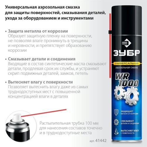 ЗУБР WR-1000 400 мл, средство для тысячи применений, многофункциональная аэрозольная смазка, Профессионал (41442)