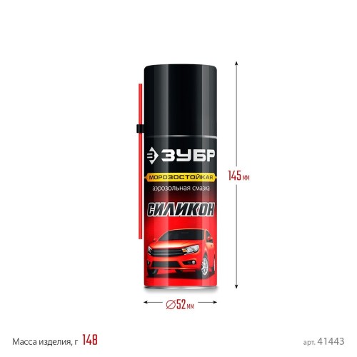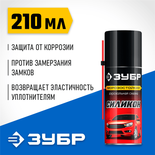 Силиконовая смазка ЗУБР 41443, предназначена для смазывания различных подвижных деталей и поверхностей. Морозостойкая. Объем 210 мл.