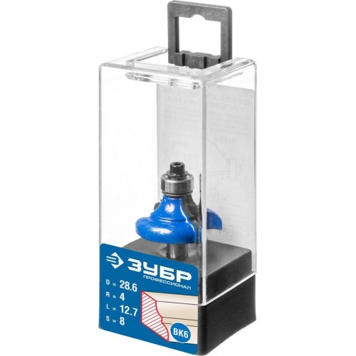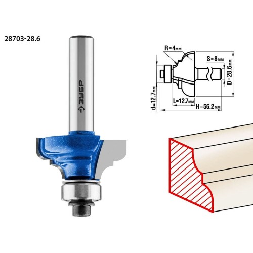 Фреза кромочная калевочная ЗУБР 28703-28.6, предназначена для скругления кромок при обработке столешниц, полок, шкафов и прочих работ с разнообразными видами древесины. Высококачественный твердый сплав для повышенного ресурса и чистоты обработки. Заточка производится только на самых современных станках с ЧПУ. Упорный подшипник позволяет обрабатывать криволинейные кромки без дополнительных приспособлений.