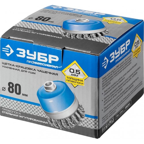 ЗУБР Ø 80 мм, проволока 0,5 мм, щетка чашечная УСИЛЕННАЯ для УШМ 3527-080_z02 Профессионал