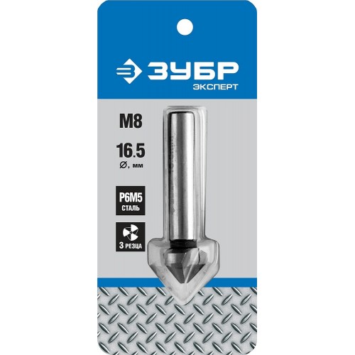 Использование быстрорежущей стали при производстве позволяет существенно увеличить ресурс. Зенкеры ЗУБР предназначены для использования на электродрели или сверлильном станке для раззенковки отверстий в стали, цветных металлах и пластике под установку винтов в потай
