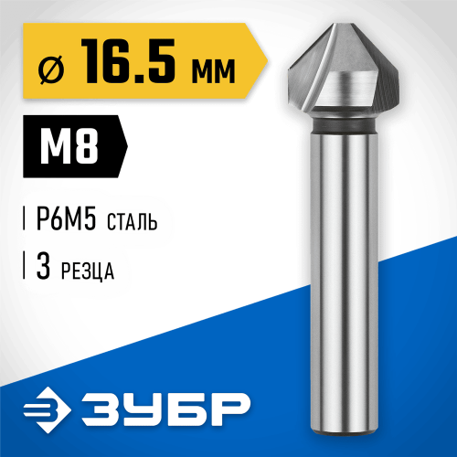 Зенкер ЗУБР 29730-8, предназначен для зенкования отверстий в стали, цветных металлах и пластике с помощью электродрели или сверлильного станка. Конусные зенкеры ЗУБР производятся на самом современном оборудовании и проходят строжайший контроль качества на каждом этапе изготовления, благодаря чему обеспечивается быстрая и эффективная раззенковка отверстий с помощью данного инструмента. Конусные зенкеры ЗУБР имеют оптимальные углы заточки и выполнены из высококачественных быстрорежущих сталей по специальной технологии.