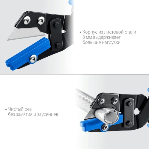 Универсальный (незаменимый) инструмент для чистого реза теперь со сменным лезвием. Идеально справляется с резкой различных профилей из резины и пластика, поможет бережно подрезать садовые цветы. Ножницы способны резать даже медный кабель сечением до 3х5,5 мм². Сменная площадка для резки под различными углами уже в комплекте.