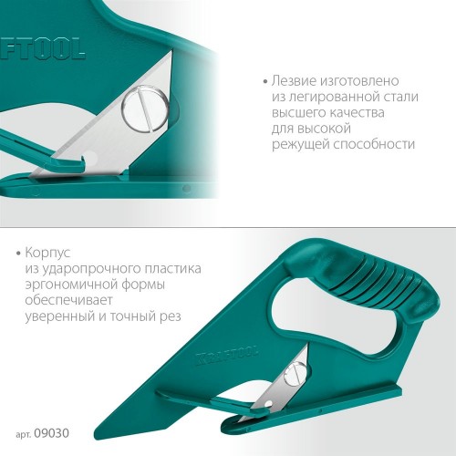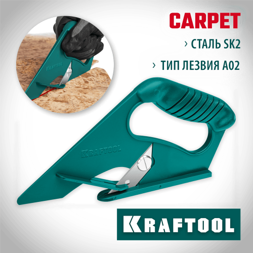 Нож для напольных покрытий KRAFTOOL 0930_z02, предназначен для реза листовых материалов (линолеума, ковровых покрытий и т. п.). Специальная конструкция ножа (нижняя направляющая и верхние прижимные планки) обеспечивает точный рез листовых материалов. Лезвие изготовлено из легированной стали высшего качества для высокой режущей способности. Корпус из ударопрочного пластика эргономичной формы обеспечивает уверенный и точный рез.