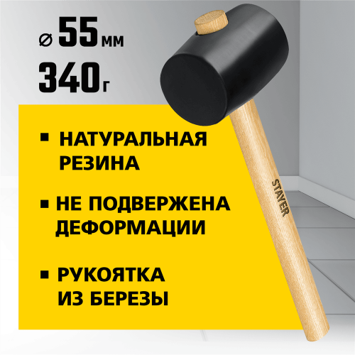 Киянка черная резиновая STAYER 20505-55, предназначена для слесарно-монтажных и демонтажных работ и работ мягкими листовыми металлами. Тип крепления головы: обратный всад.