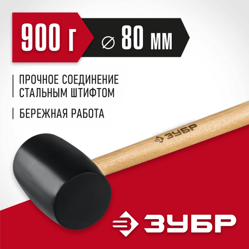 ЗУБР 900 г, чёрная резиновая киянка с деревянной рукояткой 2050-90_z02 Мастер
