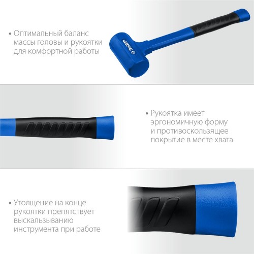 Молоток безынерционный ЗУБР 2049-1350, предназначен для слесарно-монтажных, демонтажных и работ мягкими листовыми металлами. Голова молотка засыпана свинцовой крошкой для гашения инерции. Рабочая часть кувалды имеет пустотелую цельнолитую оболочку из ударопрочного пластика, облитого эластомером. Рукоятка имеет противоскользящее покрытие.