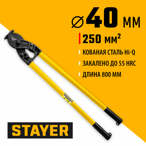 Кабелерезы STAYER изготовлены из высококачественной стали и предназначены для перекусывания неармированного одножильного или многожильного кабеля из цветных металлов (Cu + Al) без деформации и замятия краев. Максимальный диаметр кабеля 25мм.