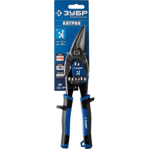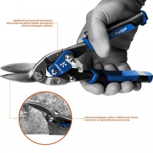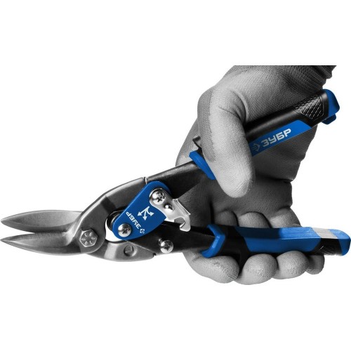 Ножницы по металлу ЗУБР 23130-L, предназначены для реза листового металла. Изготовлены из высокопрочной хромованадиевой стали. Лезвия ножниц закалены токами высокой частоты до твердости 58-62 HRC. Насечки на режущих кромках препятствуют соскальзыванию материала в процессе реза. Двухкомпонентные рукоятки из пластмассы и мягкого эластичного полимера обеспечивают удобный и надежный захват.