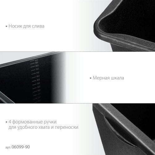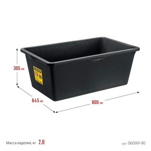 Таз строительный STAYER 06099-90_z02, предназначен для приготовления и переноски строительных смесей. Таз строительный подходит для приготовления любых видов строительных растворов (клеевых, штукатурных, лакокрасочных).