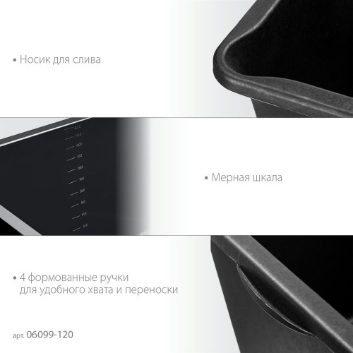 Таз строительный STAYER 06099-120_z01, предназначен для приготовления и переноски строительных смесей. Таз строительный подходит для приготовления любых видов строительных растворов (клеевых, штукатурных, лакокрасочных).