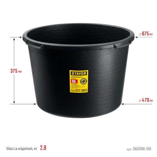 STAYER 90 л, ударопрочный пластик, таз строительный круглый 06098-90_z02