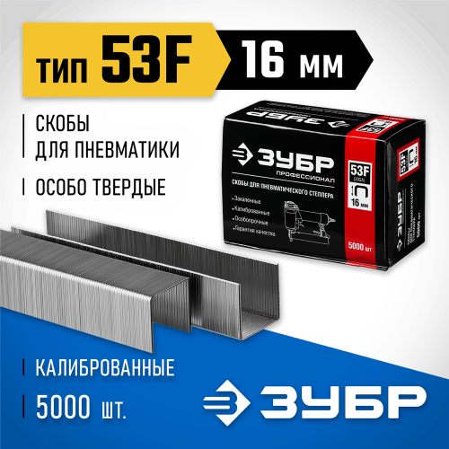 ЗУБР скобы тип 53F, 16 мм, скобы особотвердые 31950-16 Профессионал