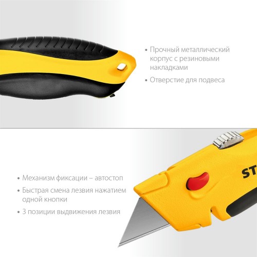 STAYER трапециевидное лезвие А24, металлический, универсальный нож с автостопом Hercules-24 0947 Professional