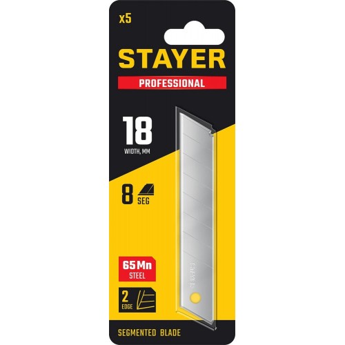 Лезвия STAYER 0915-S5, используются в качестве сменных рабочих элементов в ножах с шириной направляющей пластины 18 мм для профессионального реза различных материалов: бумаги, картона, обоев и пленки. Обладают повышенным ресурсом, обеспечивают длительную и качественную работу.