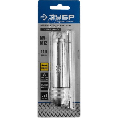 Метчикодержатель ЗУБР 28138-110_z01, предназначен для жесткой фиксации метчиков при нарезании резьбы вручную. Изготовлен из высокоуглеродистой стали с хромированным покрытием. Использование высококачественных материалов и самого современного точного оборудования гарантирует длительный срок службы и безупречное качество инструмента.