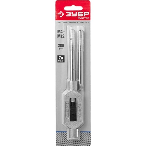 Метчикодержатель ЗУБР 28131-2_z01, предназначен для жесткой фиксации метчиков при нарезании резьбы вручную. Изготовлен из высокоуглеродистой стали с хромированным покрытием. Использование высококачественных материалов и самого современного точного оборудования гарантирует длительный срок службы и безупречное качество инструмента.