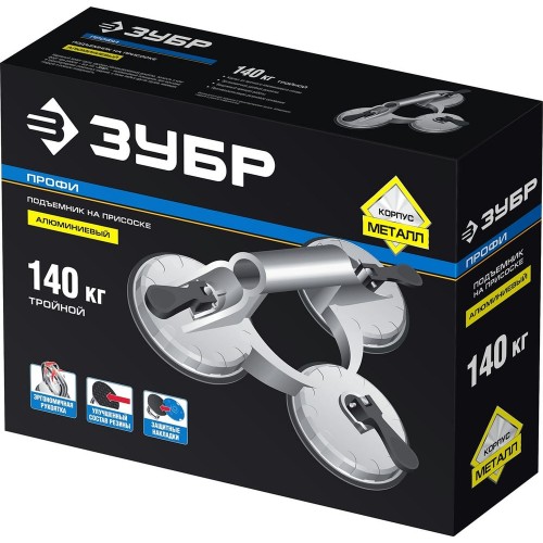 ЗУБР 140 кг, тройной алюминиевый подъемник на присоске, Профессионал (33723-3)