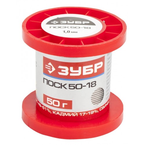 ЗУБР 50 г, ПОСК 50-18, специальный легкоплавкий с кадмием, проволока, 1 мм, припой 55454-050-10